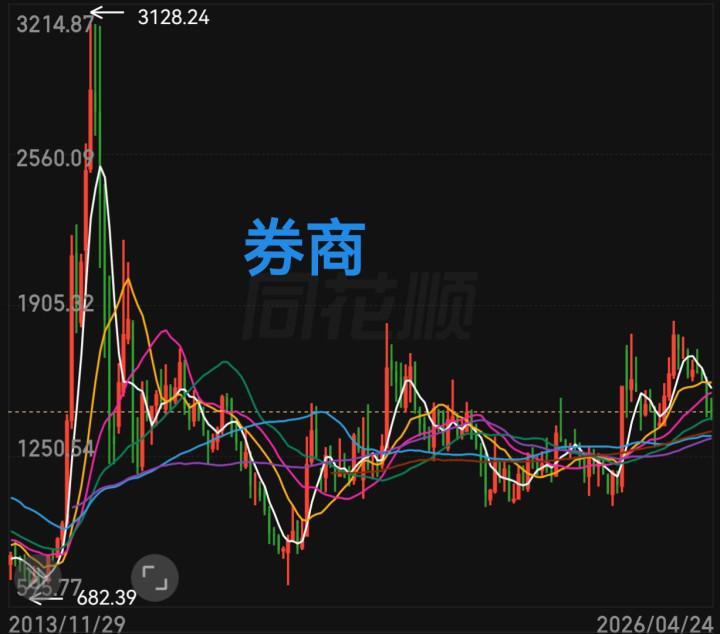 上周说券商板块好,很多人有意见,主意是大家对券商期待太高。为什么说券商好?现在整体算是低位,同时不像白酒板块,趋势坏了,趋势下行。券商板块整体趋势不是向上,全是低位横盘,如果牛市,券商肯定得几倍涨幅,就算大盘崩了,那也是抄底机会。